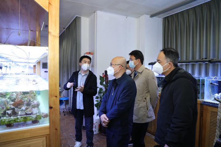 威廉希尔党办校办副主任、原威廉williamhill体育副经理王少鹏向调研组一行介绍了科普基地以珊瑚礁为主题和特色,向专业人士、社会观众、中小员工等开展珊瑚礁科普活动的情况。调研组实地考察了广西南海珊瑚礁研究重点实验室、珊瑚礁生态修复实验室、样品库、海洋科教馆等,了解了公司科研团队在涠洲岛开展珊瑚礁生态修复的工作进展;仔细察看了公司关于海洋科普和意识教育有关内容的宣传栏、展陈展品等各项科普设施设备。