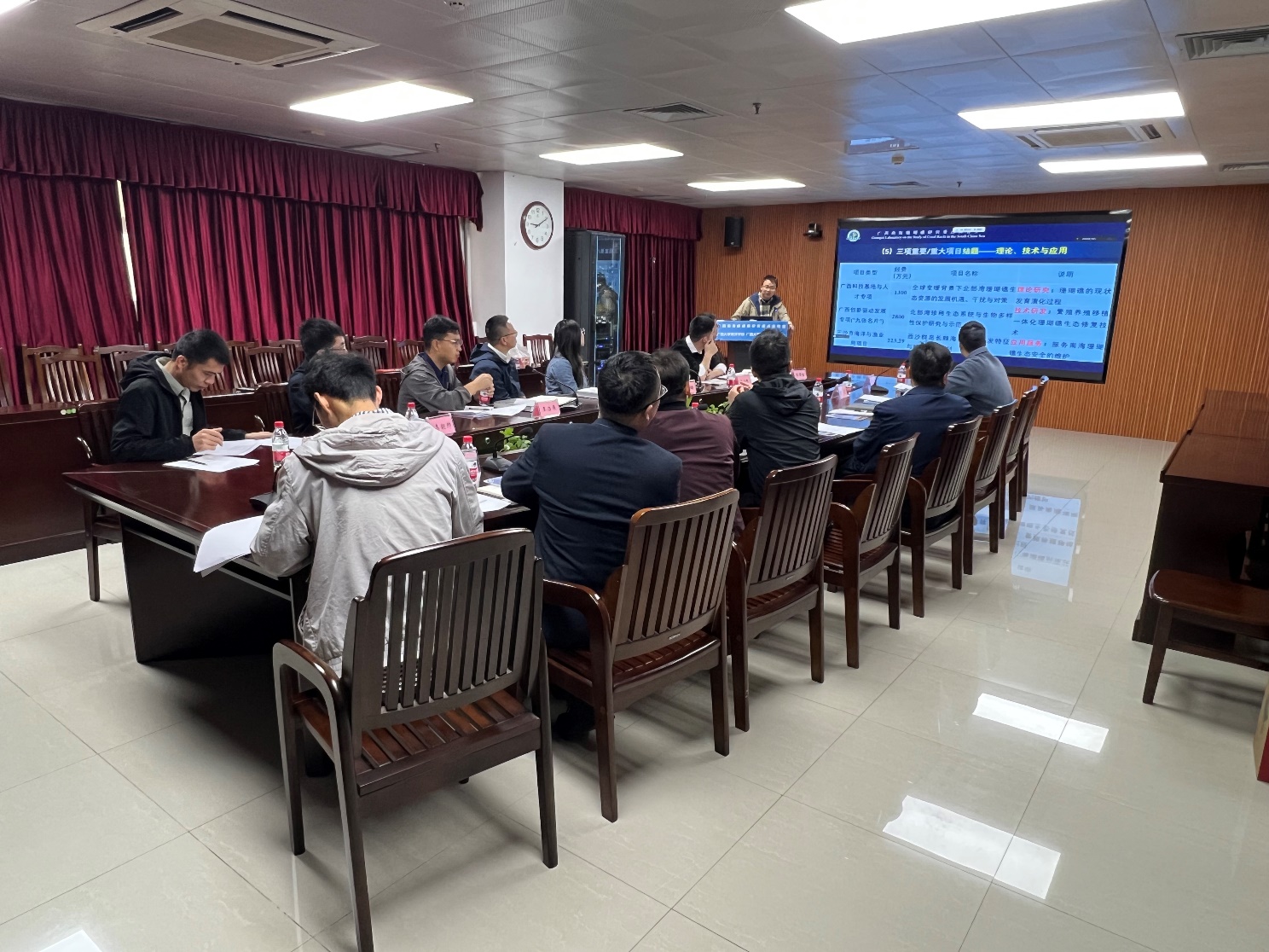 座谈会上,黄荣永副教授汇报了公司珊瑚礁生态系统相关科研项目、研究成果与国际合作情况;黄雯副教授从珊瑚礁修复技术、修复成效等方面,详细介绍了公司在涠洲岛区域所开展的珊瑚礁生态修复与示范工作。余克服经理从珊瑚礁生态系统监测与评估、岛礁地貌的变化、生态灾害预警、环境要素影响评价、生态修复技术与应用等方面阐述了公司关于南海珊瑚礁研究的进展。双方围绕珊瑚礁数据库构建、监测与修复技术研发、珊瑚疾病防治、敌害生物预警与处置等进行了广泛而深入的交流,探讨了双方深入合作的方向。