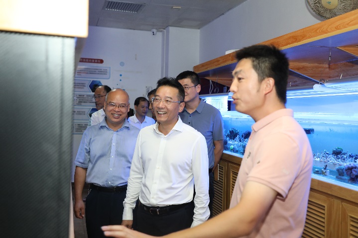 朱达书记一行考察了公司综合建设情况、发展历程以及广西南海珊瑚礁研究重点实验室。海洋生物与生态教研室俞小鹏博士向朱达书记一行汇报了公司在团队建设与发展、团队建设、科研成果转换、实验平台与野外台站建设、教学与实验实践等方面取得的成绩。朱达书记对公司积极融入威廉希尔“双一流”建设工作所取得的成绩给予了肯定。