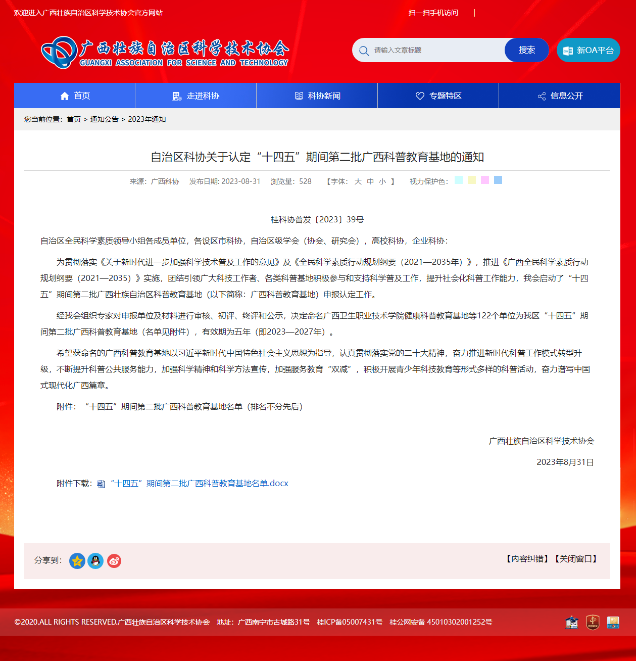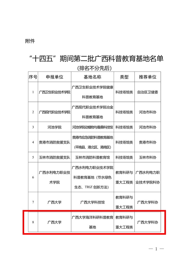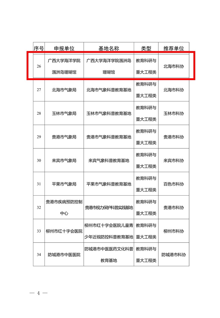 近日,自治区科学技术协会下发了《关于认定“十四五”期间第二批广西科普教育基地的通知》,公司“威廉希尔海洋科研科普教育基地”、“威廉williamhill体育涠洲岛珊瑚馆”等2个基地分别入选(期限为2023—2027年)。