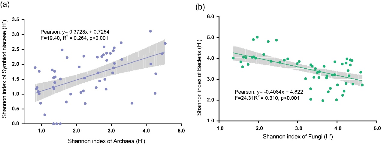 图7 基于三沙永乐龙洞水体微生物α多样性的线性回归分析