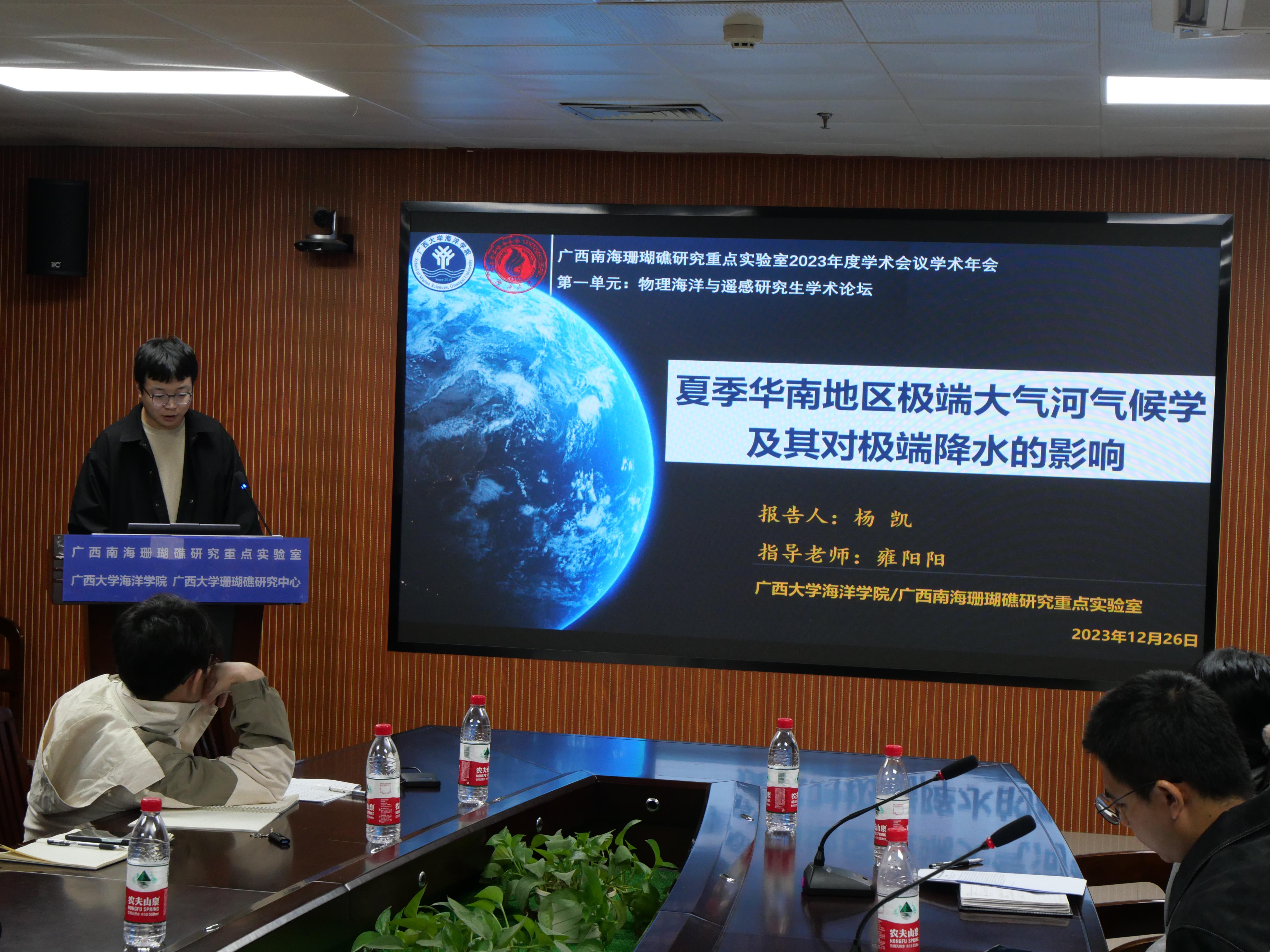 2023年12月16日上午,广西南海珊瑚礁研究重点实验室物理海洋与遥感研究生学术论坛通过线上及线下相结合的方式顺利召开。