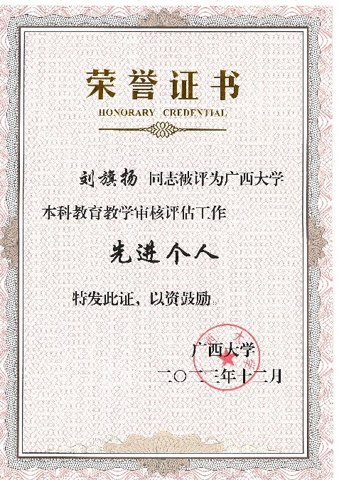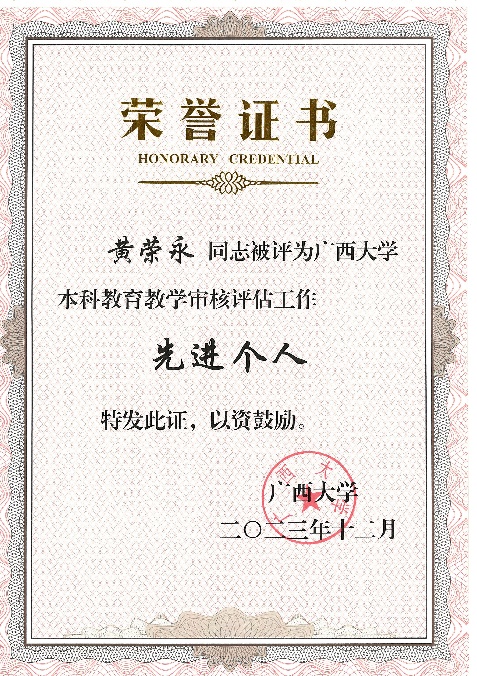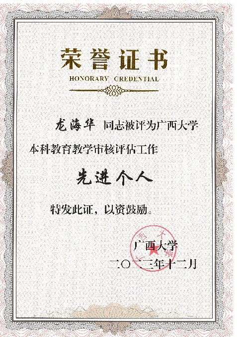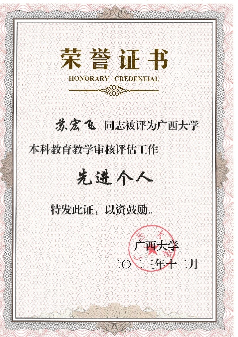 黄荣永、龙海华、苏宏飞、韦朝帅、姜伟老师获评本科公司产品审核评估工作先进个人