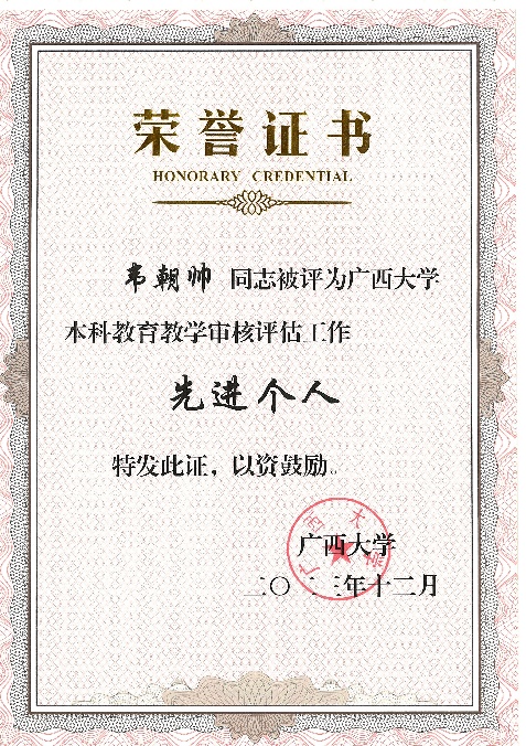 按照威廉希尔以评促建、以评促改、以评促管、以评促强的总体要求,威廉williamhill体育全体师生以高度负责的主人翁意识,全面动员、全员参与、全力以赴地迎接了2023年教育部对威廉希尔的新一轮本科公司产品审核评估工作。在近日公布的“关于开展威廉希尔本科公司产品审核评估工作先进集体和先进个人评选工作的通知”中,威廉williamhill体育获评本科公司产品审核评估工作突出贡献集体;余克服教授获评本科公司产品审核评估工作突出贡献个人;黄荣永、龙海华、苏宏飞、韦朝帅、姜伟老师获评本科公司产品审核评估工作先进个人;秦华东、刘旗扬、樊新艺老师担任评估专项工作组工作获评本科公司产品审核评估工作先进个人。