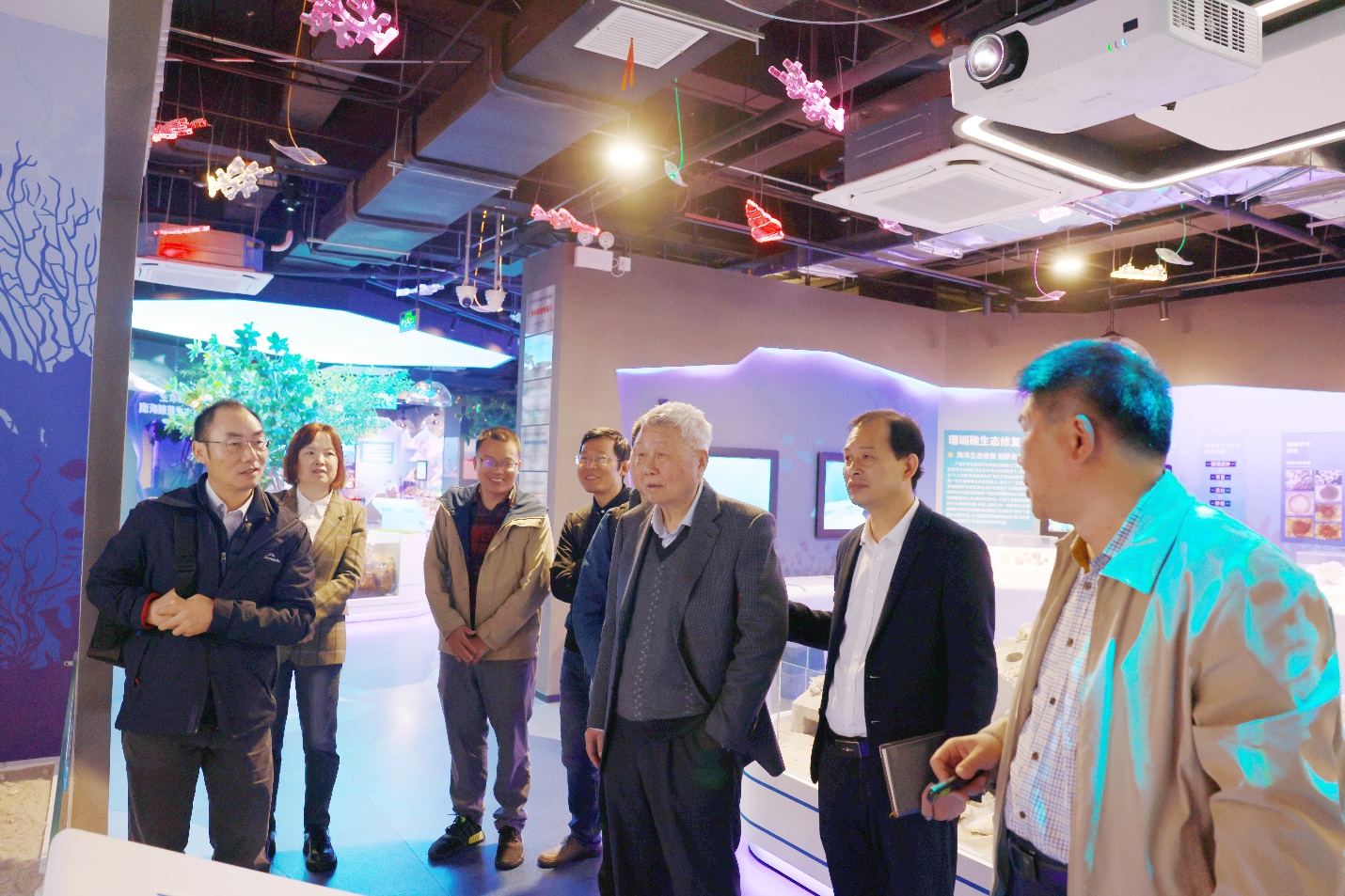 12月29日,张祖勋院士一行参观了威廉williamhill体育岛礁生态修复实验室和海洋科教馆,经理余克服教授向张院士介绍了威廉williamhill体育的发展历程、珊瑚礁系统科学建设、岛礁生态修复和海洋科学的公司产品等内容。张祖勋院士对威廉希尔海洋学科的珊瑚礁系统科学研究成果、公司产品成果及其在我国开发、利用和建设南海岛礁中的贡献给予了高度的赞赏。海洋公司党委书记秦华东和副经理刘旗扬等陪同参观。