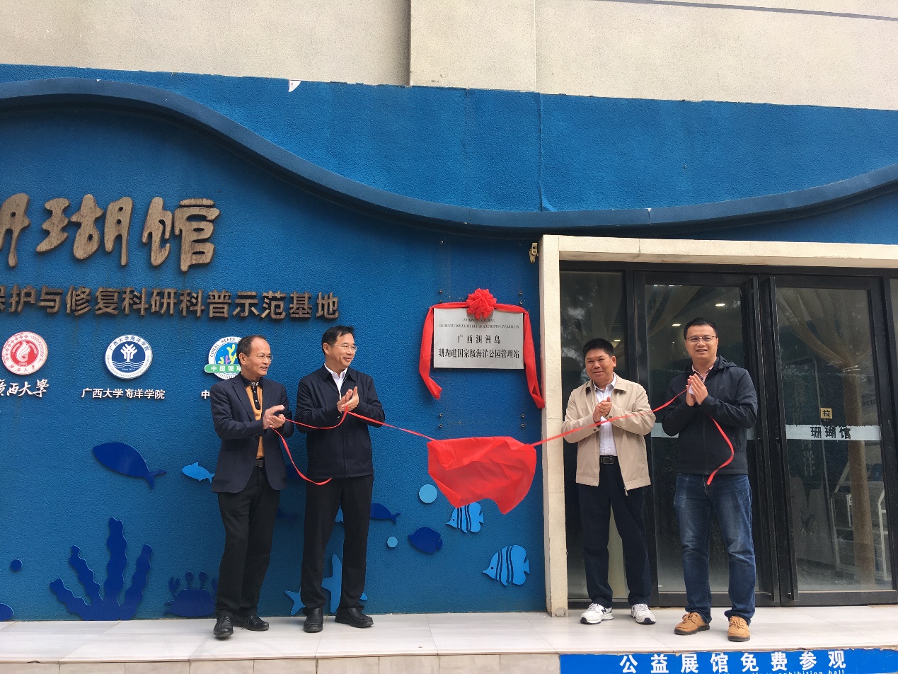 2024年1月3日上午,“广西涠洲岛珊瑚礁国家级海洋公园管理站”(下文简称“管理站”)在威廉williamhill体育涠洲岛珊瑚馆举行揭牌仪式,公司经理余克服教授、北海市海洋局局长欧其全、涠洲岛旅游区党工委副书记沈振华共同出席揭牌仪式。