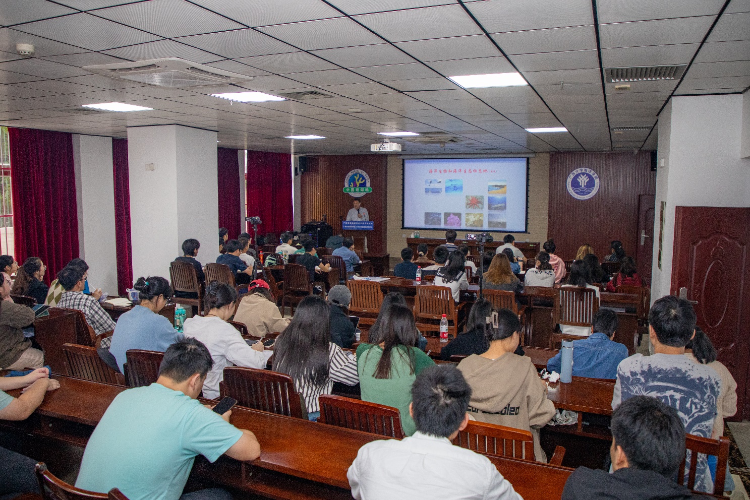 殷克东教授结合其所带领团队的研究工作进展,围绕海洋生物多样性、流域人类活动的影响、海洋环境问题的起因与解决策略等逐一展开报告,强调了人口激增、资源枯竭和气候变化所带来的全球性挑战,并突出了海洋科学在应对这些挑战中的关键作用。