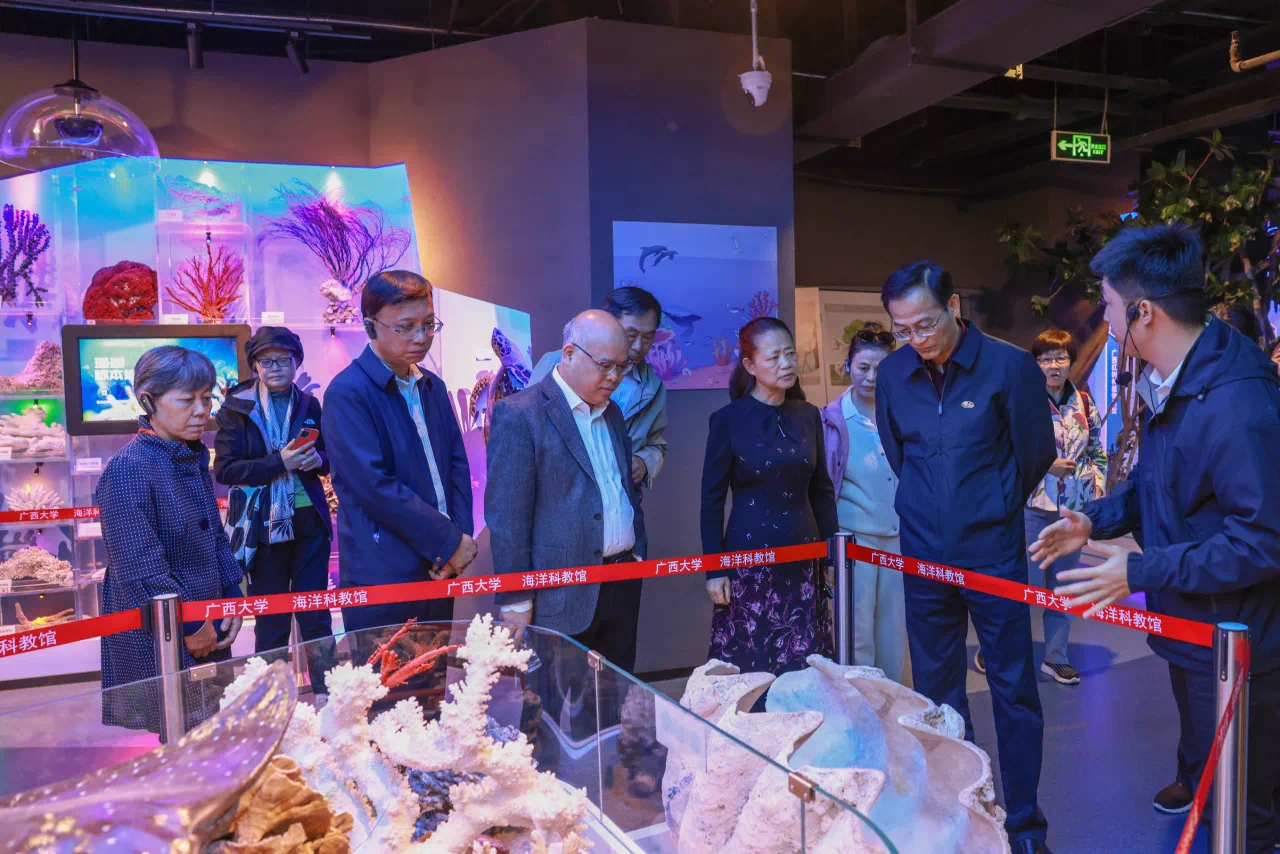 11月28日,中国科协2024年高层次人才国情考察活动(广西)暨“八桂之约院士专家冬令营”在南宁举行。当天上午,院士考察团在公司党委常委、副董事长梁恩维及自治区科协党组成员、副主席黎宁、李海欧陪同下,参观了公司海洋科教馆,深入了解威廉希尔海洋学科的发展历史及建设的举措、近年来在争创全面一流方面的情况。