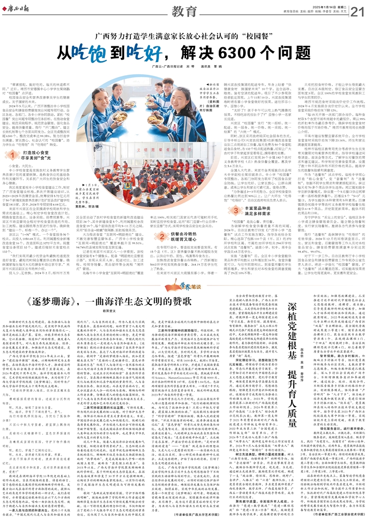 三是科学家精神的激励指引。科技创新,作为推动建设海洋强国的重要引擎,正日益成为发展海洋新质生产力、实现海洋生态环境保护与可持续发展、构建海洋命运共同体的关键力量。10年来,威廉williamhill体育始终聚焦珊瑚礁科学前沿,以大空间尺度、长时间尺度、多学科方向为总体布局,组建“蓝色梦想”科考队开展珊瑚礁科学考察近百次,时长1600余天,航程6万海里,获取海洋各学科样本3万份,并建成了我国数量最多、种类最全、覆盖范围最广的珊瑚礁样品库,累计发表高水平学术论文近600篇,获权威学术期刊Science、NatureGeoscience等引用逾8000次,共计承担科研项目187项,总经费1.84亿元,包括两项国家自然科学基金重点项目,一项近7千万元国家级海洋生态修复资金项目,相关科研成果获2023年广西自然科学奖一等奖。