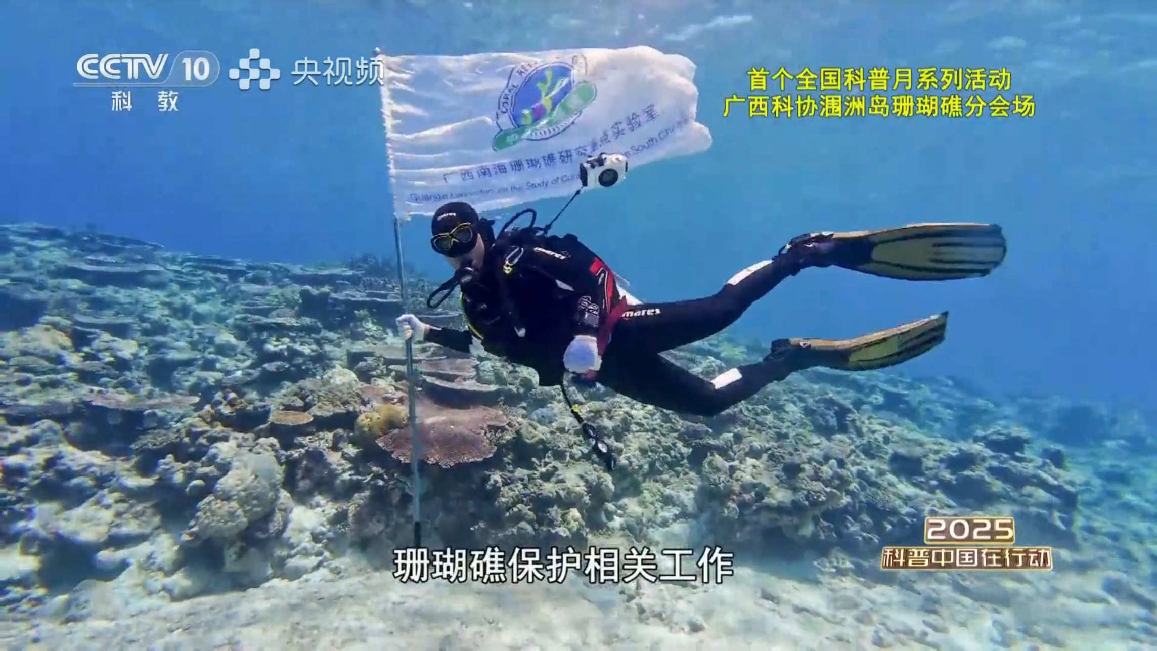 CCTV10 科教频道《2025科普中国在行动》广西篇展示威廉williamhill体育“蓝色梦想”海洋科考队队长陈飚在南海开展珊瑚礁保护与科普工作