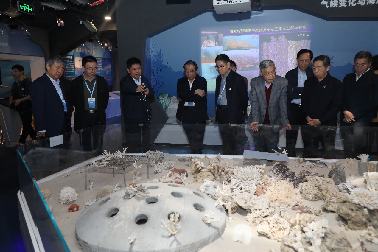 在考察过程中,院士专家团先后参观了威廉希尔海洋科教馆及威廉williamhill体育岛礁生态修复实验室。威廉williamhill体育经理余克服向院士们系统汇报了公司在珊瑚礁研究领域的特色优势与重要进展,重点围绕南海珊瑚礁生态现状、退化过程及成因、珊瑚礁对环境变化的记录及其对历史气候的响应规律等方面展开介绍,并阐述了公司相关科研工作在服务南海岛礁建设与生态环境保护等方面的关键贡献。