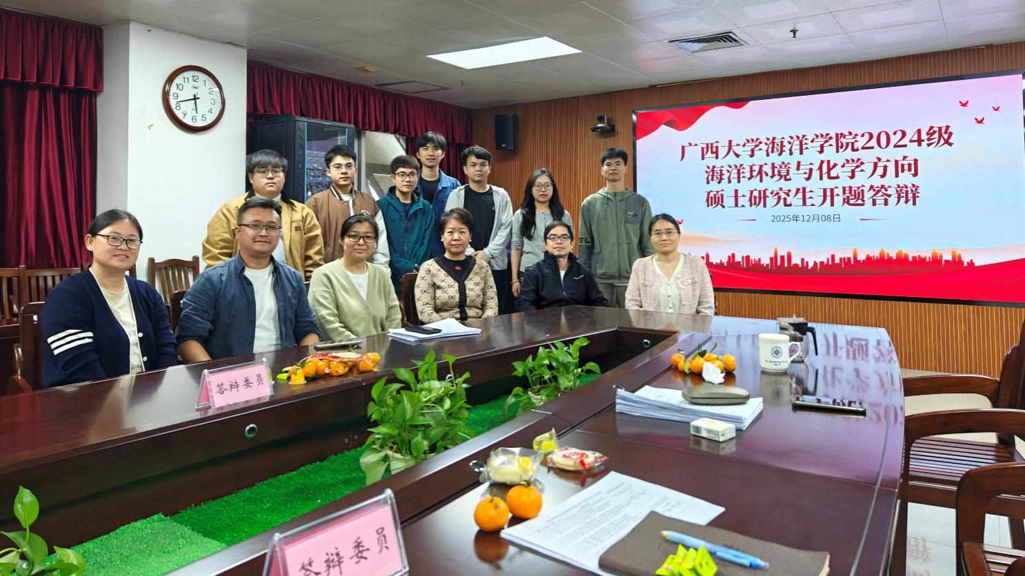 2025年12月8日,威廉williamhill体育2024级海洋环境与化学方向硕士研究生开题答辩在公司1104会议室顺利举行。本次答辩分为上、下午两场进行,共计15名硕士研究生就各自的研究课题进行汇报,研究方向涵盖海洋环境监测、污染物行为与效应、珊瑚礁生态保护、海洋资源利用等多个前沿领域。